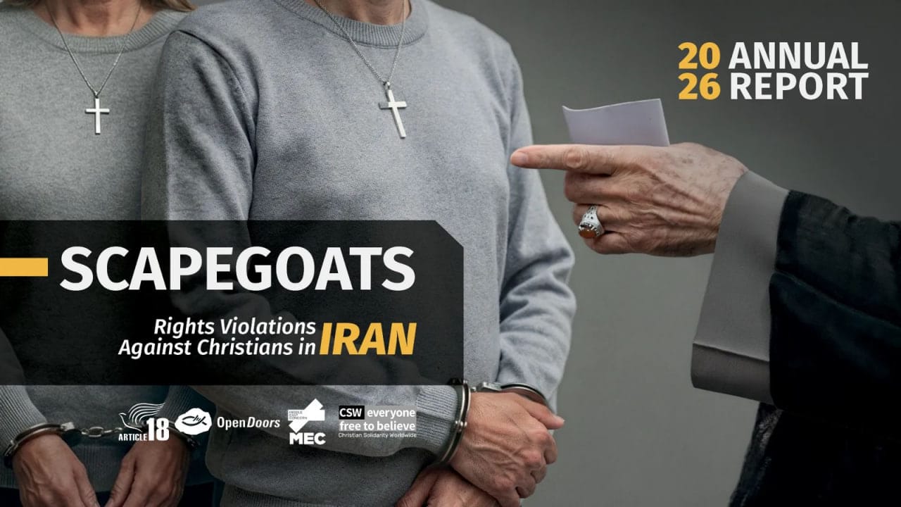 سازمان ماده ۱۸ با همکاری سه سازمان جهانی مسیحی ـ «درهای باز»، «همبستگی جهانی مسیحی» و «دیدهبان خاورمیانه» ـ هشتمین گزارش سالانه خود را درباره وضعیت مسیحیان ایران منتشر کرد. این گزارش که به بررسی وضعیت مسیحیان در سال گذشته میلادی میپردازد، با عنوان «قربانیسازی» (Scapegoats) انتشار یافته و بهویژه به موج بازداشت نوکیشان مسیحی پس از جنگ ۱۲ روزه جمهوری اسلامی با اسرائیل میپردازد؛ بازداشتهایی که با اتهاماتی چون «جاسوسی» و «مسیحیت صهیونیستی»، و بدون ارائه سند و مدرک صورت گرفتهاند.