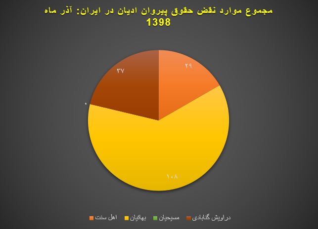 گزارش ماهیانه نقض حقوق پیروان ادیان در آذر ماه ۱۳۹۸