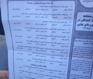 پخش پرسشنامههایی در راستای تفتیش عقاید سیاسی و مذهبی دانشآموزان همزمان با امتحانات نهایی