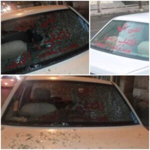 شکستن شیشه یک خودروی پارک شده مشکوک در مقابل مسجد مکی با جمله توهین آمیز به اعتقادات مذهبی اهل سنت
