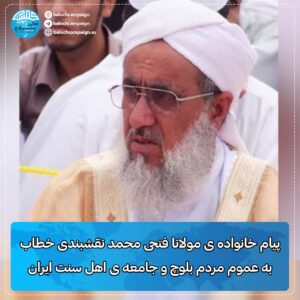 پیام خانواده ی مولانا فتحی محمد نقشبندی خطاب به عموم مردم بلوچ و جامعه ی اهل سنت ایران