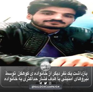 به گزارش کمپین فعالین بلوچ ، امروز ٢٨ شهریور ماه ۱۴۰۲، با یورش نیروهای امنیتی به منزل یک شهروند بلوچ و شکستن شیشه ها و پنجره منزل در زاهدان، یک نفر دیگر از خانواده ی کوهکن بلوچ بازداشت و به مکانی نامعلوم منتقل شد.
