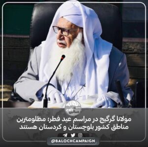 مولانا گرگیج در مراسم عید فطر؛ مظلومترین مناطق کشور بلوچستان و کردستان هستند