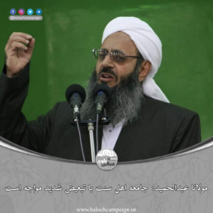 مولانا عبدالحمید با انتقاد از تبعیض گسترده علیه اهل سنت، خواستار توجه به این اقلیت مذهبی در ایران شد. به گزارش کمپین فعالین بلوچ، “مولانا عبدالحمید اسماعیلزهی” امام جمعه اهل سنت زاهدان، در مراسم نماز جمعه ۷ خرداد ماه ۱۴۰۰، از تبعیض شدید حاکمیت علیه اهل سنت انتقاد کردند و خواستار رسیدگی به حقوق اهل …