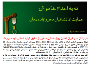 محمد علی طاهری را فوری و بدونقیدوشرط آزاد کنید آقای محمد علی طاهری، زندانی عقیدتی، از روز ۷ مهرماه ۱۳۹۵، در اعتراض به عدم اجرای قرار منع تعقیب و ممانعت از آزادیاش دست به اعتصاب غذای نامحدود زده و گویا در پی وخامت وضعیت جسمی، به بیمارستانی در خارج از زندان اوین منتقل شده است. …