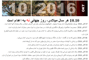 مبارک باد 16 مهر برابر با هشتم اکتبر روز جهانی کودک ما فعالین حقوق بشر در نمايندگی نروژ و دانمارك همصدا با سایر مدافعین و فعالین حقوق کودک درایران ضمن محکوم نمودن هرگونه نقض حقوق این قربانیان بی دفاع که محروم ترین و بی حقوق ترین بخش جامعه را تشکیل میدهند، فرا رسیدن روز جهانی …