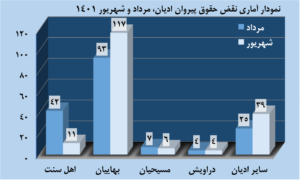 گزارش ماهیانه نقض حقوق پیروان ادیان شهریور 1401