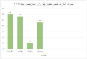 گزارش ماهیانه نقض حقوق پیروان ادیان , بهمن 1399