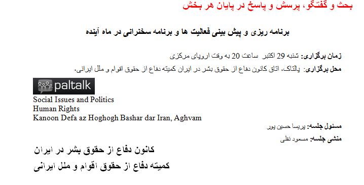 فراخوان جلسه اعضای کمیته دفاع از حقوق زنان چهارشنبه 26 اکتبر 2016