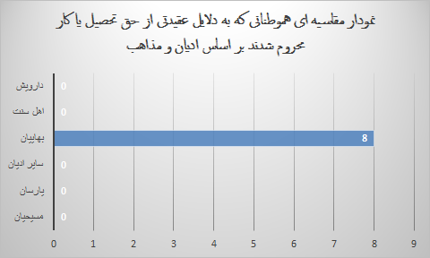 روند ستیز با بهاییان در این ماه نیز ادامه داشت بهگونهای که حقوق شهروندان بهایی در موارد ذیل نقض گردید.