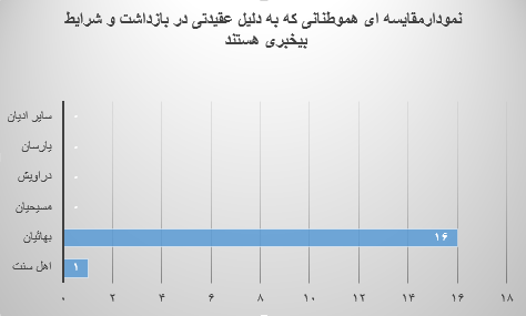 زندانیان اهل سنت که به خاطر تبلیغ دینی با اتهاماتی مانند اقدام علیه امنیت ملی مواجه هستند حکم محاربه در دست دارند در زندان و در فضای نامناسبی دوران زندان خود را میگذرانند و بهصورت مدام از سوی مأموران زندان به دلیل عقیدهشان مورد بیاحترامی قرار میگیرند.
