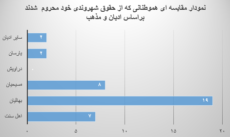 گزارش ها نشان می داد که پیروان سایر ادیان همچنان با محدودیت های شدید رو به رو هستند. پیروان ادیان با رسمیت شناخته شده مانند مسیحیان ( به ویژه کسانی که سابقا مسلمان بوده اند ) و آنهایی که به رسمیت شناخته نشده، مانند مسیحیان بشارتی همچنان با محدودیت های شدید و تبعیض رو به رو هستند و طبق گزارش ها برای انجام مسالمت آمیز اعتقادات مذهبی خود تحت پیگرد قانونی قرار می گیرند. در پاسخ خود با این گزارش، دولت اتهامات در زمینه ایجاد محدودیت برای اقلیت های مذهبی را رد کرده است و مدعی است که کلیسا های خانگی به فعالیت غیر قانونی مشغول هستند، چون مجوزهای لازم را از مقامات دولتی دریافت نکرده اند. دولت همچنین ادعا می کند که نیاز مسیحیان ایران بر آورده شده و هیچ نیازی به تاسیس یا ایجاد کلیسا های جدید از جمله کلیسای خانگی وجود ندارد.
