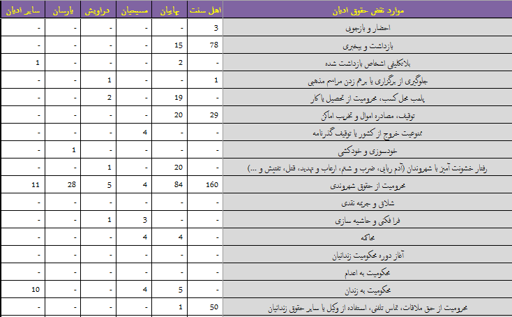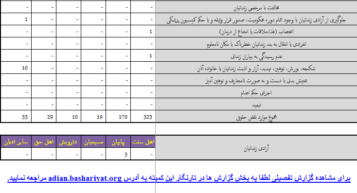 گزارش ماهیانه نقض حقوق پیروان ادیان