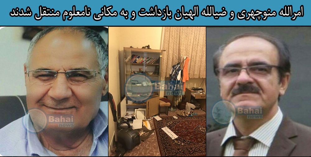 به گزارش تارنگار حقوق بشر در ایران به نقل از بهایی نیوز، امرالله منوچهری و ضیالله الهیان، دو شهروند بهایی ساکن کاشان، در تاریخ دوشنبه ۱۲ تیر ۱۳۹۶ پس از بازداشت از سوی ماموران امنیتی به مکانی نامعلوم منتقل شدند. گفتنی است؛ این دو شهروند بهایی پس از احضار تلفنی به ستادخبری در شهر کاشان بازداشت گشته اند. یک منبع مطلع می گوید: «در دهم اردیبهشت ماه ماموران وزارت اطلاعات وارد منازل آنان شده بود و کل منزل را بهم ریخته بودند.»