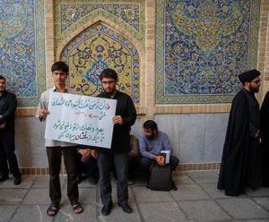 اما در حاشیه این مراسم خبرگزاری تسنیم نزدیک به سپاه که تصاویر تجمع مدرسه فیضیه را منتشر کرد، که یکی از آنها نسبت به دیگر عکسها تفاوتهایی داشت: حمله به یهودیت و مسیحیت با استناد به قرآن.