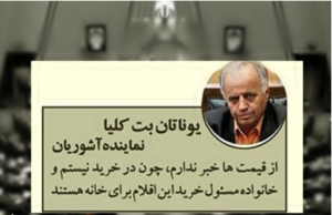 به گزارش وبسایت جماران که زیر نظر سیدحسن خمینی، نوه روحالله خمینی بنیانگذار انقلاب اسلامی در ایران اداره میشود در پرسشی از چند نماینده مجلس شورای اسلامی از آنها پرسیده «قیمت یک کیلو گوشت، یک کیلو روغن و یک عدد نان لواش و … چقدر است؟». یوناتن بت کلیا، نماینده آشوریان در مجلس در پاسخ به این سوال گفته «از قیمتها خبر ندارم چون در خرید نیستم و خانواده مسئول خرید این اقلام برای خانه هستند». این که یک نماینده تا این حد از مسائل معمول جامعه