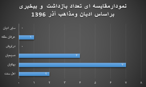 گزارش پیش رو دربردارنده اطلاعات آماری نقض حقوق پیروان سایر ادیان در ایران تا پایان آذر ماه 1396 شمسی است. این گزارش بهصورت آماری-تحلیلی ارائه میشود، مسلماً به دلیل عدم اجازه دولت ایران به مدافعان حقوق بشر جهت فعالیت بهخصوص در حوزه گزارشگری نقض حقوق بشر و همینطور ممانعت از گردش آزاد اطلاعات و بالطبع به رسمیت نشناختن حوزه مستقل در فعالیتهای مدنی از سوی دولت ایران، در حال حاضر مسئله گزارشگری، امری دشوار و خطیر با محدودیتهای فراوان در ایران محسوب میشود.