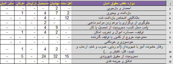 | جلوگیری یا برهم زدن مراسم مذهبی | ۲ مورد |