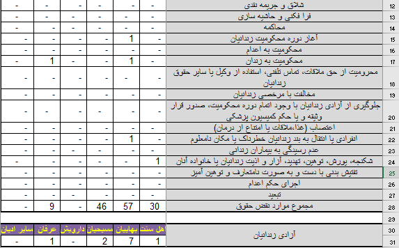| محرومیت از حقوق شهروندی | ۳۲ مورد | |