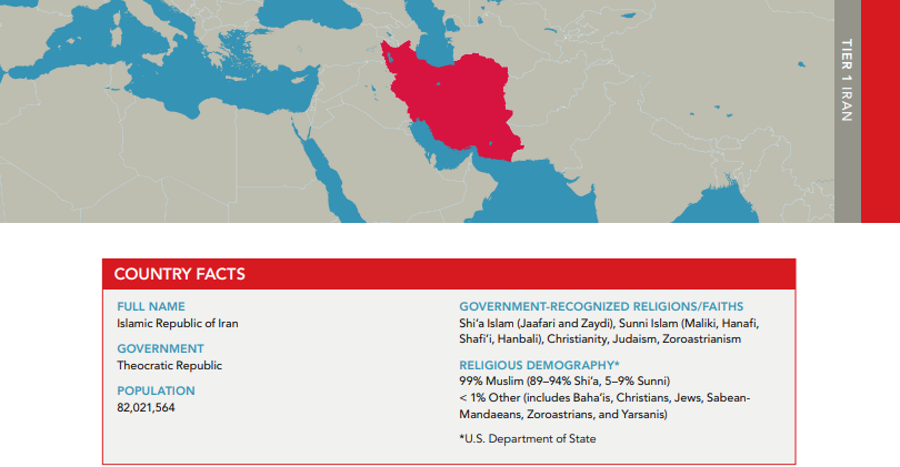 این گزارش گفته با توجه به شرایط موجود در ایران، کماکان پیشنهاد میشود ایران در فهرست کشورهای «مورد نگرانی خاص» باقی بماند.