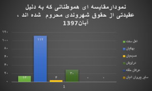روند ستیز با بهاییان در این ماه نیز ادامه داشت بهگونهای که حقوق شهروندان بهایی در موارد ذیل نقض گردید.