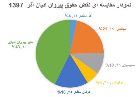 گزارش پیش رو دربردارنده اطلاعات آماری نقض حقوق پیروان سایر ادیان در ایران تا پایان آذر ماه 1397 شمسی است. این گزارش بهصورت آماری-تحلیلی ارائه میشود، مسلماً به دلیل عدم اجازه دولت ایران به مدافعان حقوق بشر جهت فعالیت بهخصوص در حوزه گزارشگری نقض حقوق بشر و همینطور ممانعت از گردش آزاد اطلاعات و بالطبع به رسمیت نشناختن حوزه مستقل در فعالیتهای مدنی از سوی دولت ایران، در حال حاضر مسئله گزارشگری، امری دشوار و خطیر با محدودیتهای فراوان در ایران محسوب میشود.