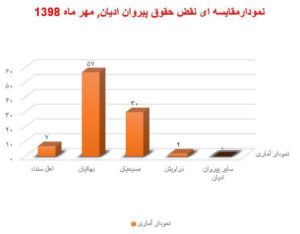 گزارش پیش رو دربردارنده اطلاعات آماری نقض حقوق پیروان سایر ادیان در ایران تا پایان مهر ماه 1398 شمسی است. این گزارش بهصورت آماری-تحلیلی ارائه میشود، مسلماً به دلیل عدم اجازه دولت ایران به مدافعان حقوق بشر جهت فعالیت بهخصوص در حوزه گزارشگری نقض حقوق بشر و همینطور ممانعت از گردش آزاد اطلاعات و بالطبع به رسمیت نشناختن حوزه مستقل در فعالیتهای مدنی از سوی دولت ایران، در حال حاضر مسئله گزارشگری، امری دشوار و خطیر با محدودیتهای فراوان در ایران محسوب میشود.