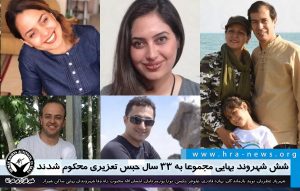 به گزارش خبرگزاری هرانا، ارگان خبری مجموعه فعالان حقوق بشر در ایران، شش تن از شهروندان بهایی ساکن شیراز توسط شعبه اول دادگاه انقلاب این شهر مجموعا به به ۳۳ سال حبس تعزیری محکوم شدند.