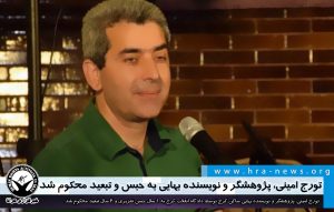 به گزارش خبرگزاری هرانا، ارگان خبری مجموعه فعالان حقوق بشر در ایران، تورج امینی، پژوهشگر و نویسنده بهایی ساکن کرج توسط دادگاه انقلاب کرج به ۱ سال حبس تعزیری و ۲ سال تبعید محکوم شد.