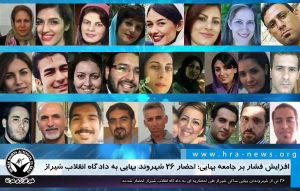 مرجان غلامپور، مژگان غلامپور، فربد شادمان، فرزاد شادمان، پریسا روحی زادگان، شمیم اخلاقی، صهبا فرحبخش، صهبا مصلحی، عهدیه عنایتی، مهیار سفیدی، شادی صادق اقدم، ورقا کاویانی، سروش ایقانی، مریم اسلامی، یکتا فهندژ سعدی، نبیل تهذیب، ثمره آشنایی، رضوان یزدانی، لالا صالحی، نسیم کاشانی، بهاره نوروزی، نوشین زنهاری، اسماعیل روستا، بهنام عزیزپور، سعید حسنی و رامین شیروانی اسفندماه سال گذشته جهت ارائه آخرین دفاع به دادگاه انقلاب شیراز احضار شدند.