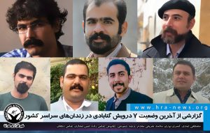 به گزارش خبرگزاری هرانا، ارگان خبری مجموعه فعالان حقوق بشر در ایران، محمد شریفی مقدم، کیانوش عباس زاده، مصطفی عبدی، عباس دهقان، کسری نوری، وحید خموشی و امین صفاری هفت تن از دروایش گنابادی مدت محکومیت خود را در زندانهای تهران بزرگ، زندان اوین، وکیل آباد مشهد، عادل آباد شیراز و قزلحصار کرج سپری میکنند.