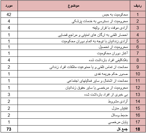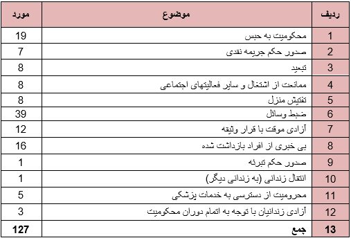 روند ستیز با پیروان عرفان حلقه در این ماه نیز ادامه داشت به گونه ای که حقوق شهروندان پیروان عرفان حلقه در موارد ذیل نقض گردید.