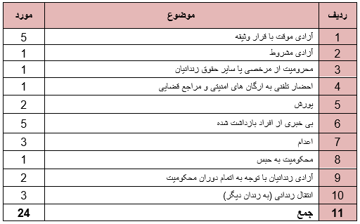 روند ستیز با دراویش در این ماه نیز ادامه داشت به گونه ای که حقوق دراویش در موارد ذیل نقض گردید.