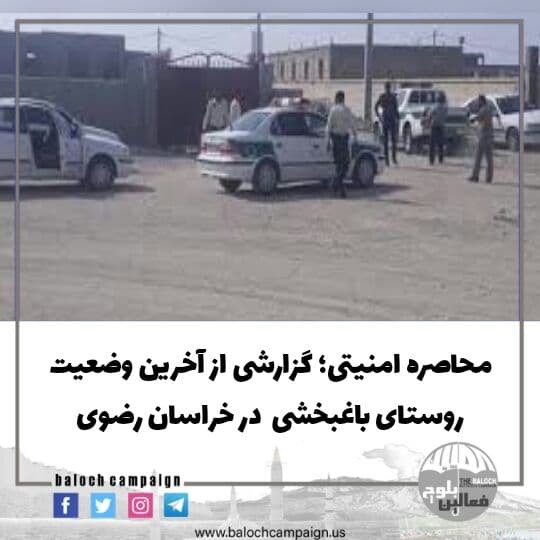 به گزارش کمپین فعالین بلوچ، ساکنان بلوچ روستای باغبخشی از توابع شهرستان خواف خراسان رضوی پس از گذشت ۱۱ روز همچنان در فشارهای امنیتی و محاصره نیروهای نظامی قرار دارند.