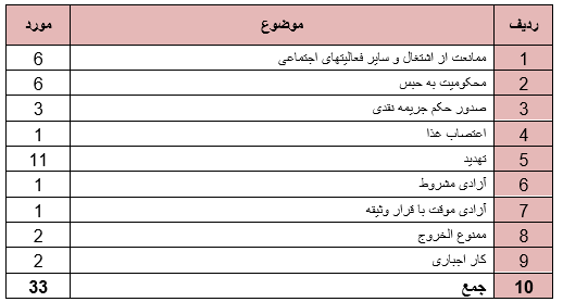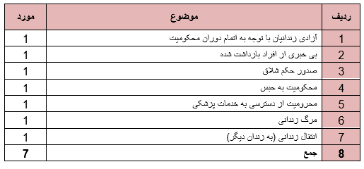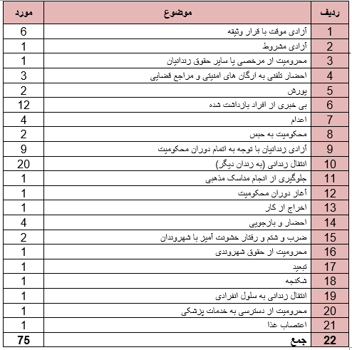 روند ستیز با دراویش در سه ماه زمستان نیز ادامه داشت به گونه ای که حقوق دراویش در موارد ذیل نقض گردید.