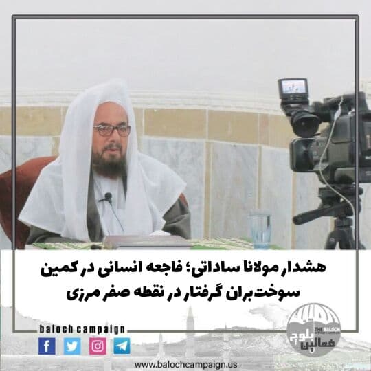 به گزارش کمپین فعالین بلوچ، “مولانا عبدالصمد ساداتی” امام جمعه اهل سنت سراوان در گفتگو با رسانههای ایران، وضعیت سوختبران گرفتار در مرز حائل ایران و پاکستان را نگرانکننده خواند و تداوم بستهشدن مرز توسط سپاه پاسداران و ارتش پاکستان را منجر به وقوع فاجعه انسانی دانست.