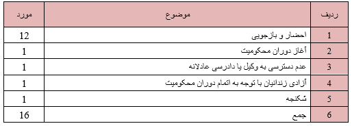 روند ستیز با دراویش گنابادی در این ماه نیز ادامه داشت به گونه ای که حقوق دراویش در موارد ذیل نقض گردید: