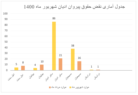گزارش ماهیانه نقض حقوق پیروان ادیان شهریور 1400