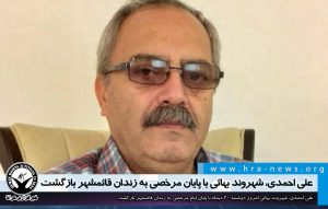 به گزارش خبرگزاری هرانا، ارگان خبری مجموعه فعالان حقوق بشر در ایران، امروز دوشنبه ۲۰ دیماه ۱۴۰۰، علی احمدی، شهروند بهائی با پایان ایام مرخصی درمانی به زندان قائمشهر بازگشت.