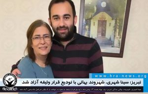 به گزارش خبرگزاری هرانا، ارگان خبری مجموعه فعالان حقوق بشر در ایران، روز چهارشنبه ۱۳ بهمنماه ۱۴۰۰، سینا شهری، شهروند بهائی ساکن تبریز با تودیع قرار وثیقه به صورت موقت و تا پایان مراحل دادرسی آزاد شد.