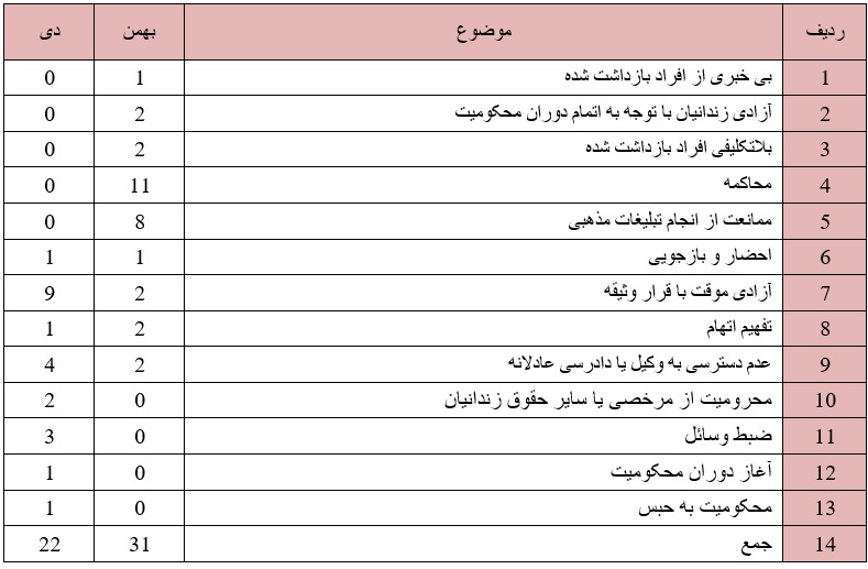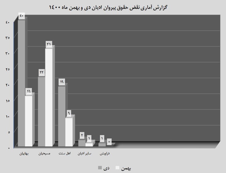 گزارش ماهیانه نقض حقوق پیروان ادیان بهمن 1400