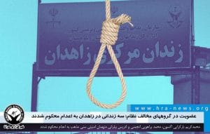 به گزارش خبرگزاری هرانا، ارگان خبری مجموعه فعالان حقوق بشر در ایران، دادگاه انقلاب زاهدان سه متهم امنیتی سنی مذهب را به اعدام و حبس محکوم کرد.
