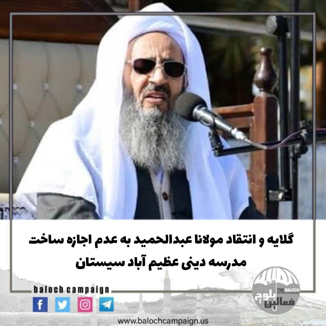 مولانا عبدالحمید به عدم اجازه ساخت مدرسه دینی عظیم آباد سیستان توسط جمهوری اسلامی گلایه و انتقاد کرد.
