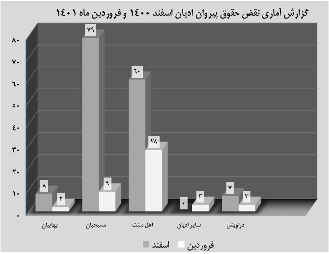 در این ماه و در ادامه روند ستیز با پیروان سایر ادیان و حقوق آنان به شرح ذیل نقض گردید: