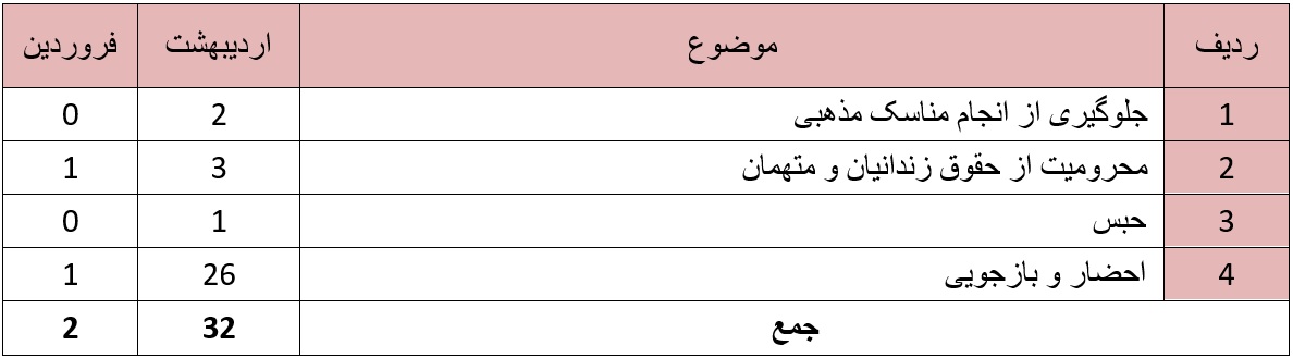 در این ماه و در ادامه روند ستیز با پیروان سایر ادیان و حقوق آنان به شرح ذیل نقض گردید: