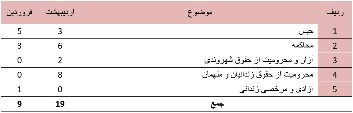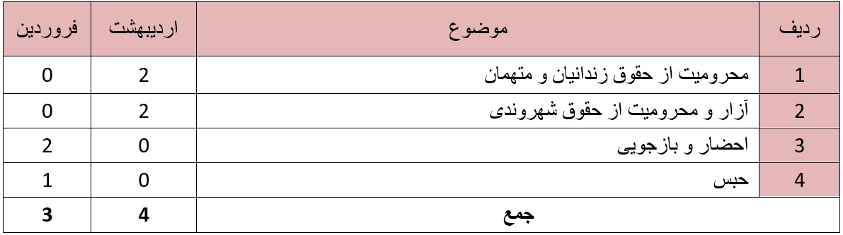 این گزارشات آماری از میان بیش از ۴۳ خبر در طول ماه اردیبهشت ۱۴۰۱ تهیه شده است.