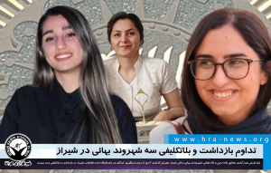 ژیلا شرفی نصرآبادی، شقایق خانه زرین و نگار ایقانی، شهروندان بهائی ساکن شیراز، علیرغم گذشت ۳ روز از زمان دستگیری، کماکان در بازداشتگاه اداره اطلاعات این شهر موسوم به پلاک ۱۰۰، در بازداشت و بلاتکلیفی بسر میبرند.
