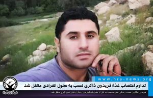 به گزارش خبرگزاری هرانا، ارگان خبری مجموعه فعالان حقوق بشر در ایران، روز دوشنبه ۲۰ تیر ۱۴۰۱، فریدون ذاکری نسب، زندانی سنی مذهب به یکی از سلولهای انفرادی زندان رجایی شهر کرج منتقل شد.