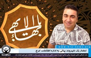 در این تماس تلفنی از این شهروند بهائی ساکن کرج خواسته شده است که روز چهارشنبه ۱۹ مرداد ساعت ۸ صبح در واحد ستاد خبری اداره اطلاعات این شهر حاضر شود.