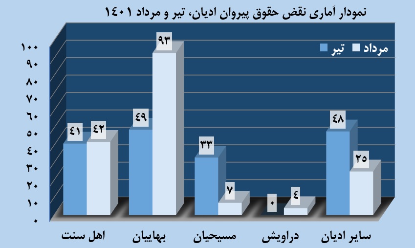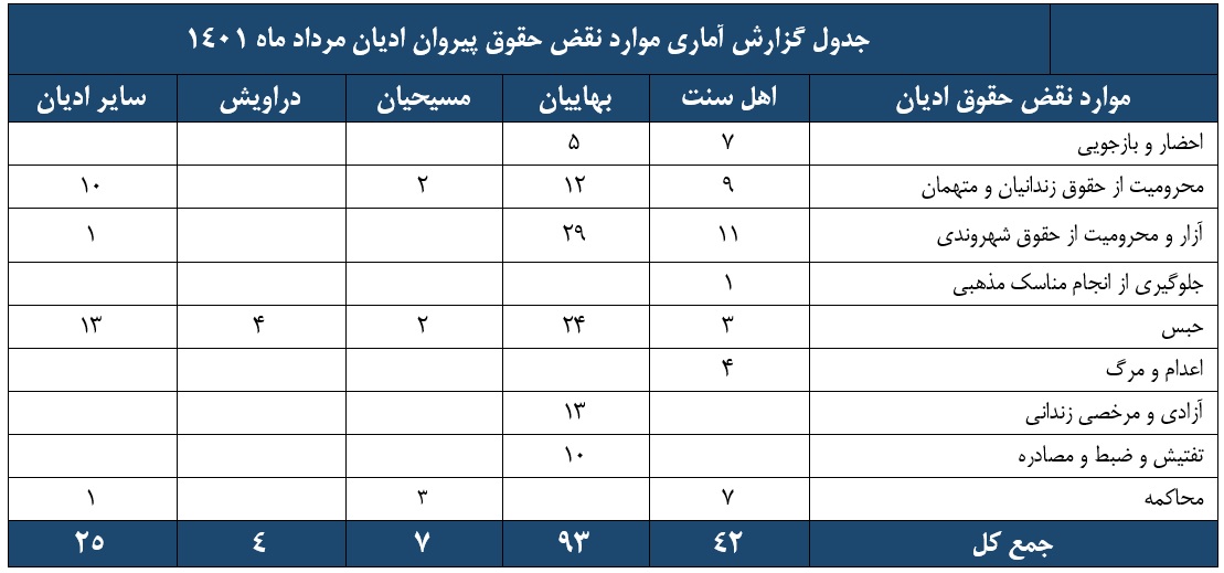گزارش ماهیانه نقض حقوق پیروان ادیان مرداد 1401